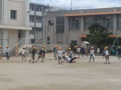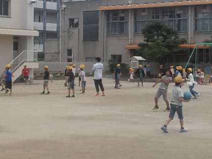 先生と一緒にドッジボール、先生をあてることができたのかな?