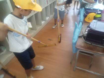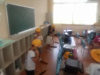 1学期お世話になった教室。感謝の気持ちを込めながら丁寧に綺麗にみんなで力を合わせて掃除をしています