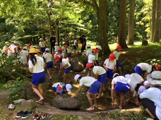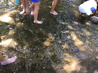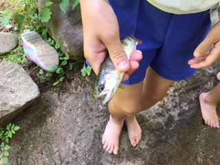冷たい水の中に入り魚つかみです。元気のいい魚をゲットしました。