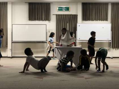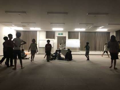 大雨の影響でキャンプファイア場が水びたしの為、室内キヤンドルサービスを行います。