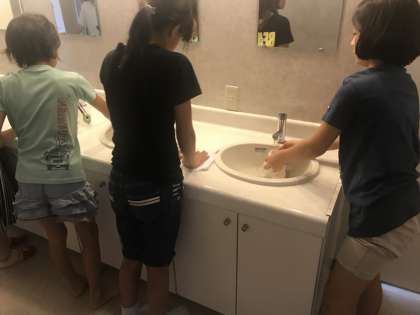 帰る用意、退舎準備です。みんなで使ったところも感謝の気持ちを込めて清掃。