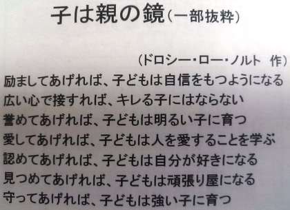 先日行われた研修会で教えていただきました。子育ての原点を言い表した素敵な言葉です。