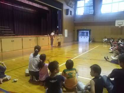 6年生担任の先生のギター演奏、みんなの気持ちが高まってきました。