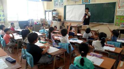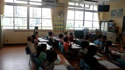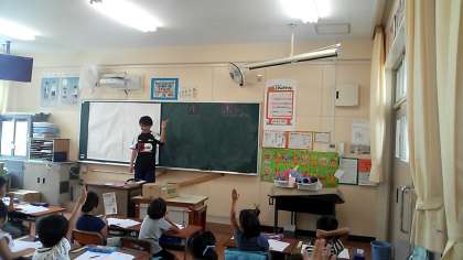 新しく出てきた漢字の練習中。漢字を見て気づいたことを発表している最中でした。
