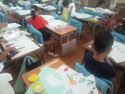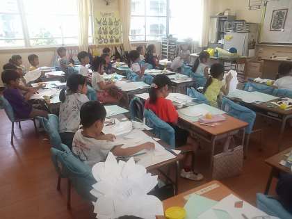 紙版画の版作りに取り組んでいました。みんなの集中力に驚きました。