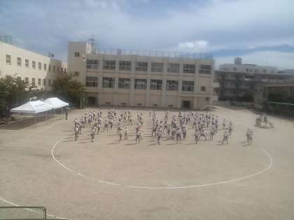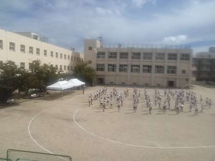 5年生の元気なかけ声が校舎の二階まで響き渡っていました