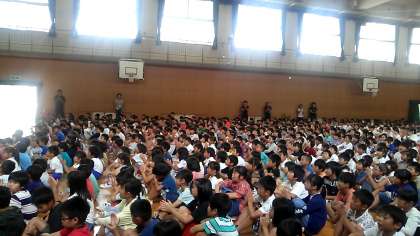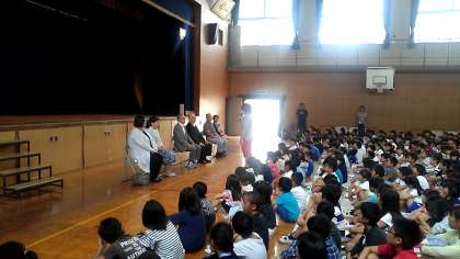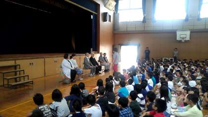 今日の児童集会では、いつもお世話になっている地域の皆様方にお越しいただき、日頃の感謝の気持ちといつまでも健康でお元気でという気持ちを込めて敬老を祝う会を行いました。