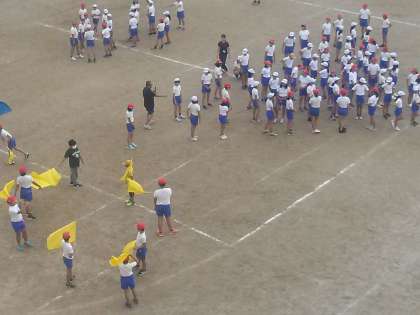 屋上から見た練習風景です。ドローンで撮影すればこんな風に見えるのかもしれません。