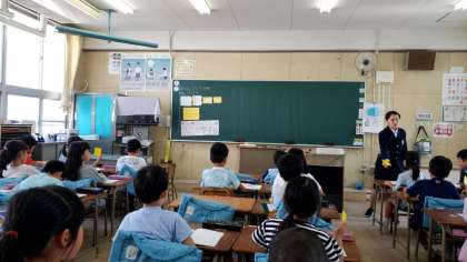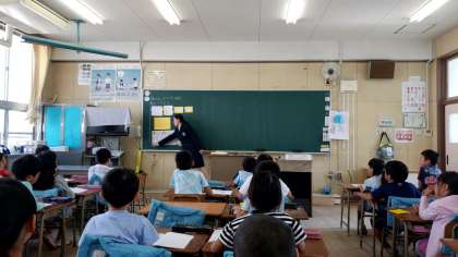 三時間目は2年生で実習生の授業です