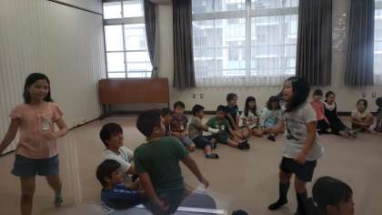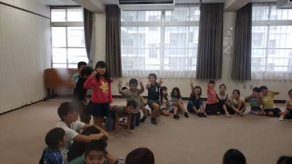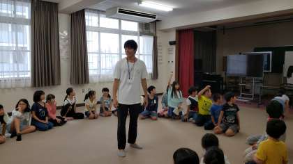 6時間目は、4年3組で実習生の先生とお別れ会。フルーツバスケットのあとは、実習生の先生への質問タイム。