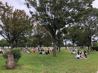 雨がパラパラと降ってきたので、先にお弁当を食べてます。