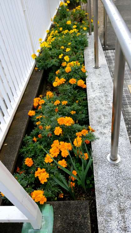 玄関のお花は、歩道からも良く見えます。子ども達だけではなく、通勤や通学で通る方々の癒しにもなっています。
