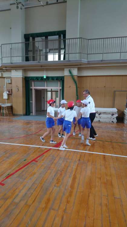 「恋ダンス」の音楽に合わせて、グループで表現活動。楽しそうだったので、入れて貰い一緒に踊りました!(^^)!