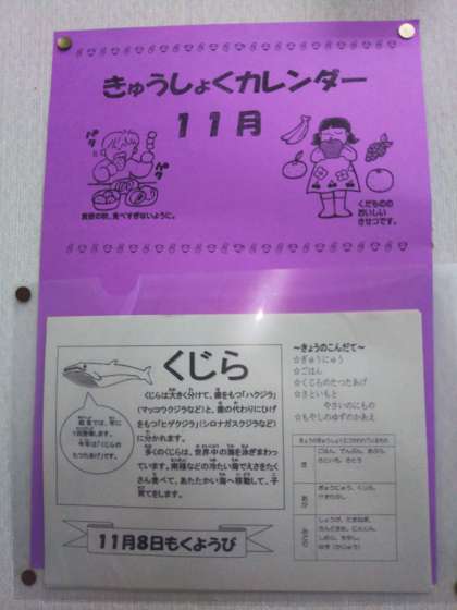 現在でも調査の目的で捕鯨がされており、学校給食ではその調査捕鯨のくじらの肉を使用しています。