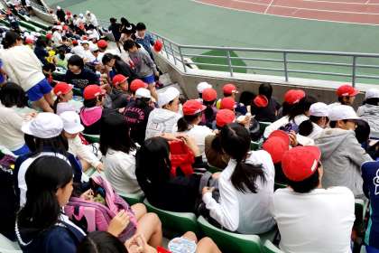 お弁当タイム。しっかり食べて午後からのサッカー&ドッジボールに備えよう!