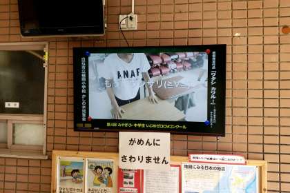 表題について、教育委員会から承認を受け、デジタルサイネージを購入し、玄関に設置しました。いじめ事前予防をはじめとして様々な形で有効活用していきます。