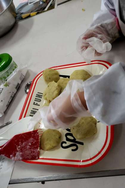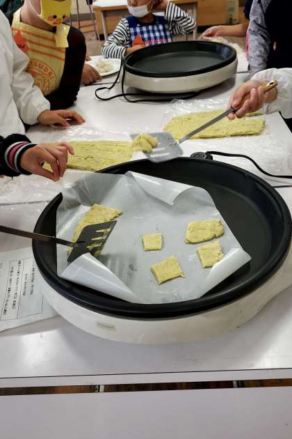 先日みんなで収穫をしたさつまいもを使って 料理をしました 。さつまいものお餅 、さつまいもの春雨、さつまいも団子、色々なバリエーションがあって