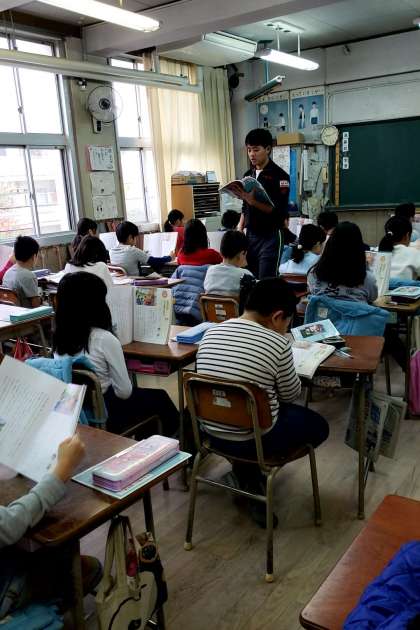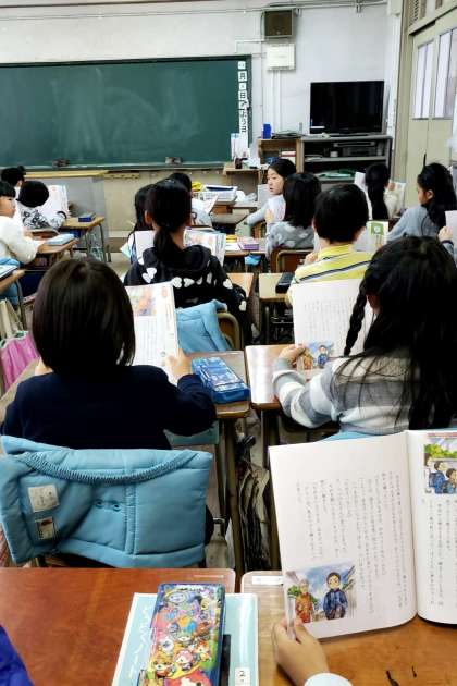 まずは先生が範読をしています。みんな よい姿勢で聞けていますね!