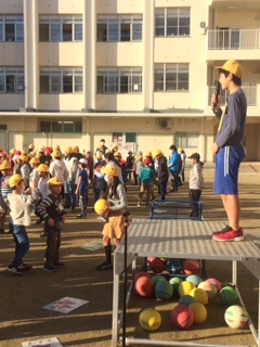 今日の児童集会はたてわり班での『ボール運び』でした!