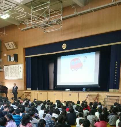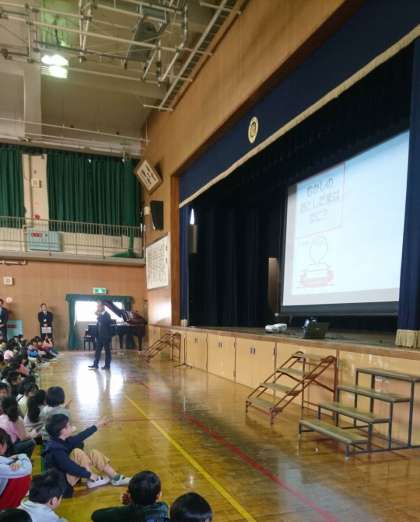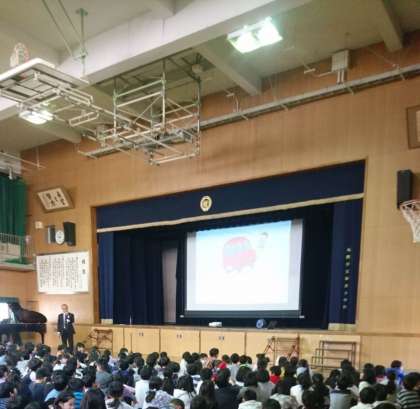 2学期終業式が講堂で行われました。長かった2学期を振り返った後、年末年始についてのクイズ、冬休みの目当てについてお話がありました。