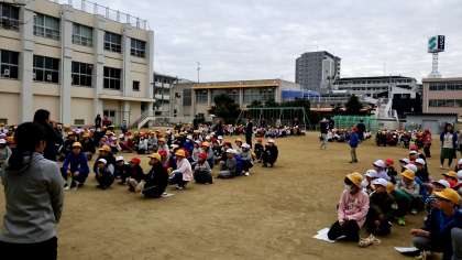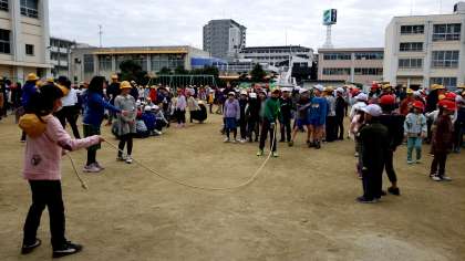 今日の集会は 再来週に行われる大なわ大会に向けての練習です。