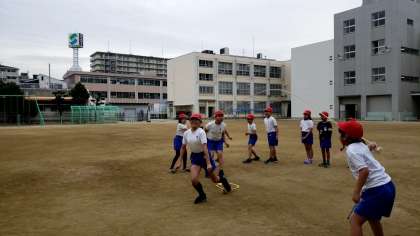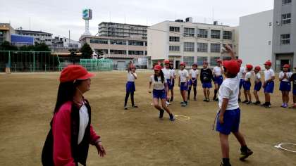 互いに励まし合いながら声を掛け合いながらみんなで力を合わせて縄を跳んでいます