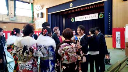 乾杯のあと、懐かしい担任の先生方としばし歓談