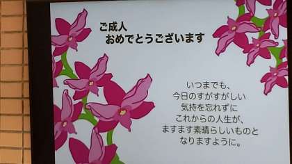 新成人の皆さん、本日は誠におめでとうございます。皆さんの未来がますます輝きをますことを祈念しております。