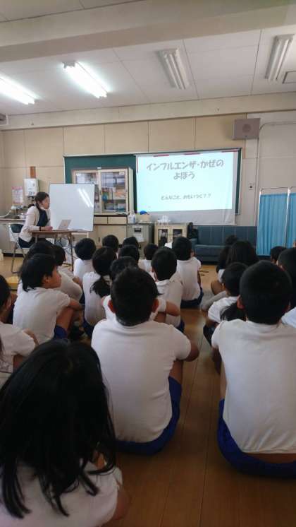 6年生からスタートした発育測定も大詰め。今日は2年1組です。流行してきているインフルエンザを予防するにはどうしたらいい?養護教諭からアドバイスをもらいました。ぜひ実行しましょうね!