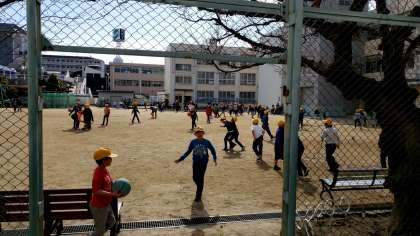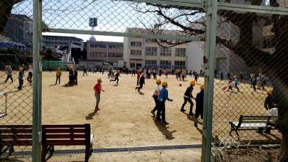 風は冷たいのですが、日差しがあります。日差しにつられて、たくさんの子ども達が元気に外遊び!