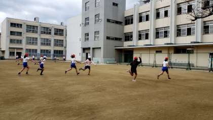 1学期の復習ということで、バトンパスの練習に取り組んでいました。