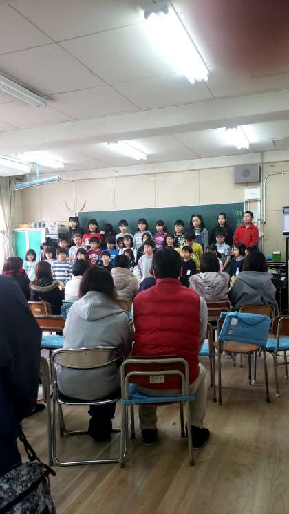 四年生は二分の一成人式。生まれてから今までを振り返ることで、家族をはじめたくさんの人々に支えられてここまで大きくなったことに気づきました。そのことを手紙にまとめ、みんなの前で発表しました。