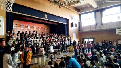 会の最後は6年生からお返しの合奏と合唱でした。 見事な 合奏合唱に1年生から5年生の皆さんは身を乗り出して聞いていました。 さすが6年生!