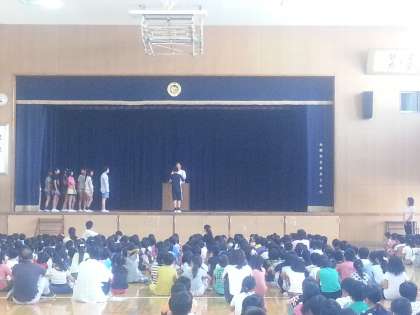 始業式では、校長先生から2学期はたくさん行事があるので、みんなで頑張りましょうと、励ましの言葉。学校の目標「あらたな心で みんなを大切にして 助け合って すごそう」と、目標の確認についてのお話もありました