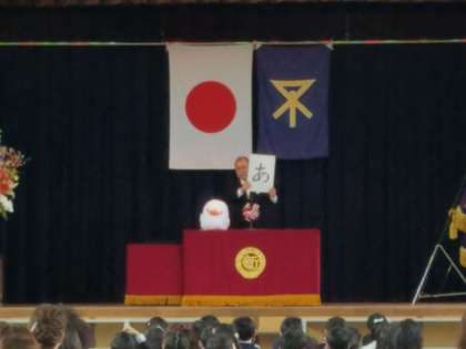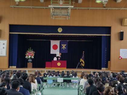 校長先生のお話を前を見てしっかりと聞いています。素晴らしい!