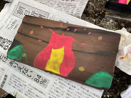 それぞれが楽しかったことや、焼き板に残したい思い出を考えて描いていました。使いづらいポスカでの色付けも、少しずつコツを掴むことができていました。どんな作品になるか楽しみです!