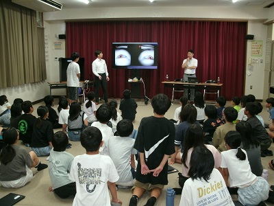 睡眠にとって朝しっかりと日光に当たることや夜は逆にゲームやスマホなどの光を控えることが大事なことを教えていただくとともに、光が当たることにより黒目が小さくなることも実験で示していただきました。
