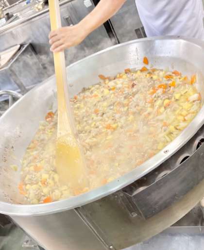 鶏肉とさつまいものシチューは、旬のさつまいもを使用したシチューです。乳、小麦不使用のシチュールウの素を使用しています。(写真2枚目)