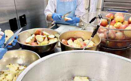 りんごは、青森県産の「サンつがる」で、1人1/4切れです。(写真3枚目)