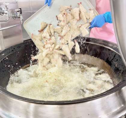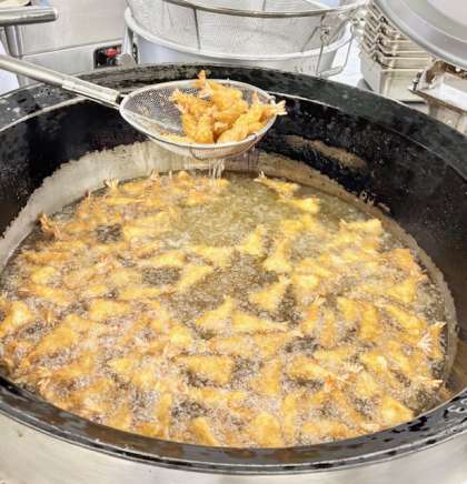 えびフライカレーライスは、牛肉を主材としたカレーライスです。1人1尾のえびフライをのせていただきます。(写真2、3枚目)
