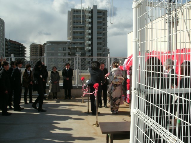 本年度は、講堂が工事のため、屋上で式典・オープンの式を行いました。