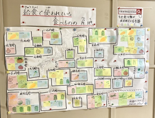 また、給食委員会児童が調べた給食で使われている食材の産地を掲示しました。