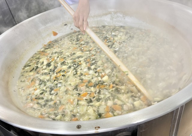 鶏肉とほうれんそうのシチューは、鶏肉、ベーコン、じゃがいも、たまねぎ、にんじん、ほうれんそう、エリンギを使用したシチューです。