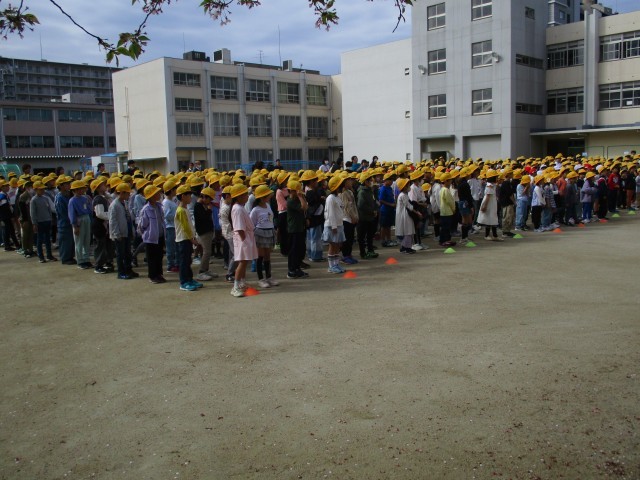 児童朝会で、「あいさつができていること」と「黄色帽子をほぼ全員がかぶって登校できている」ことについての良さについての話をしました。