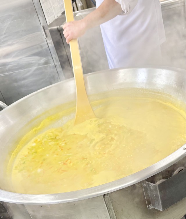 コーンスープは、キャベツ、コーン、にんじん、彩りにパセリを使用したコーンの甘みをいかしたスープです。(写真4枚目)