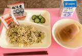 【黒糖パン1/2、和風焼きそば、きゅうりのしょうがづけ、いり黒豆、牛乳】 和風...