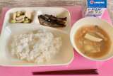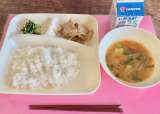 【ごはん、鶏肉の甘辛焼き、みそ汁、だいこんの煮もの、牛乳】 鶏肉の甘辛焼きは、...