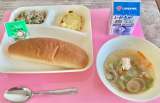 【大型コッペパン、ソフトマーガリン、鶏肉と野菜のソテー、スープ、スイートポテト、...