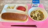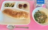【おさつパン、あげシューマイ、中華スープ、ツナとチンゲンサイのいためもの、牛乳】...