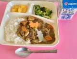 【冬野菜のカレーライス、ブロッコリーとコーンのサラダ、黄桃(カット缶)、牛乳】 ...